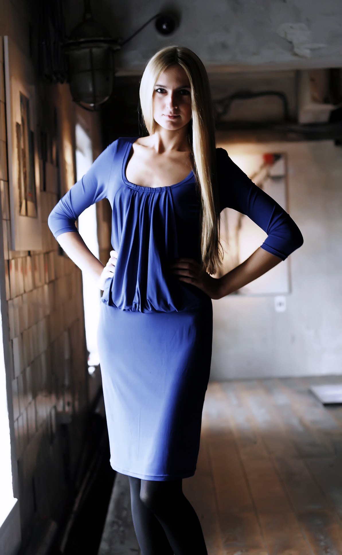 Необычайно красивое платье приталенного силуэта. Спереди украшено роскошными воланами. Длина 96 см., длина рук. 44см.