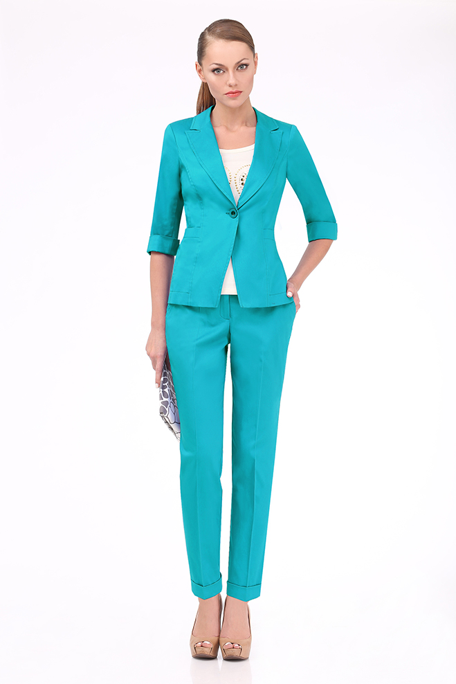 Полуприлегающий жакет с отложными лацканами и застежкой на одну пуговицу.
