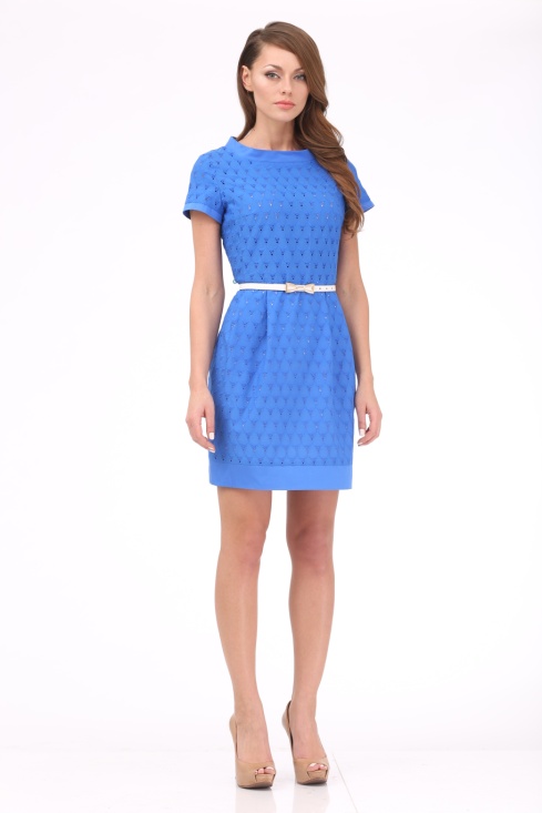 Горловина, рукава и низ отделаны деталями их хлопка тон в тон. Силуэт «песочные часы» подчеркнут складками и контрастным тонким поясом.