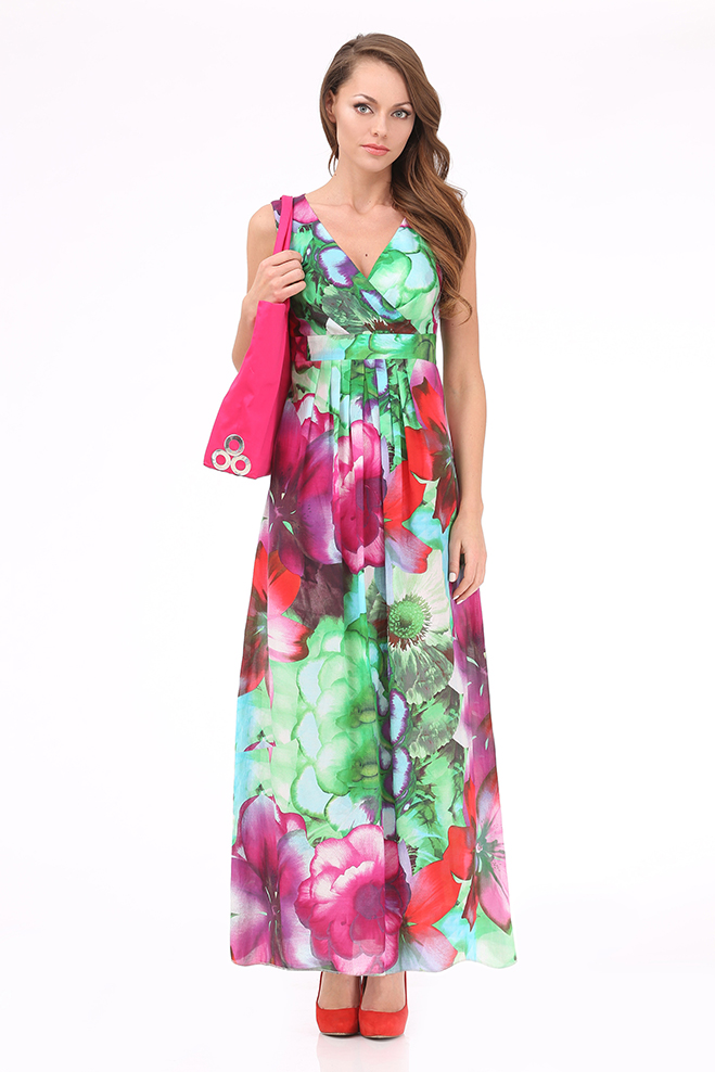Лиф с запахом и складками, выше талии втачной пояс. Свободная ниспадающая юбка со складками дарит максимум комфорта.