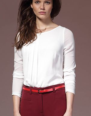 Топ из креп-шифона прямого силуэта. Длинный рукав. Вертикальные складки до низа.