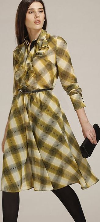 Приталенное платье длиной за колено. На лифе жабо. Расклешенная юбка. Длинный рукав с манжетой. Кожаный ремешок. Трикотажная подкладка.