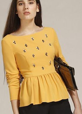 Прилегающая блузка с баской. Фигурный вырез на спинке. Длинный рукав. Вышивка. Камни.