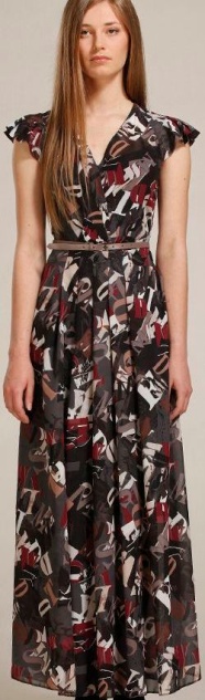 Длинное платье приталенного расклешенного к низу силуэта.