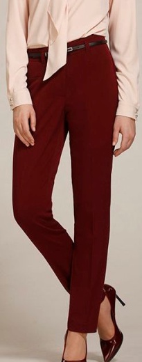 Слегка зауженные к низу брюки. Кожаный ремешок.