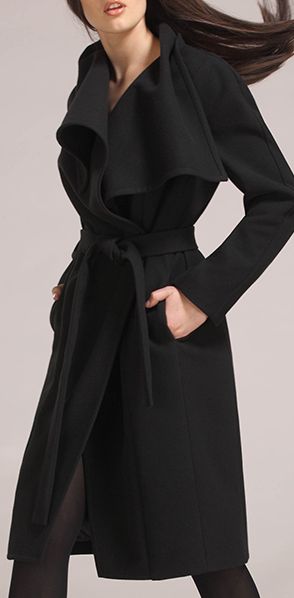 Свободно пальто на запах, длиной за колено, с завязывающимся поясом. Широкий воротник. Длинный рукав-реглан.